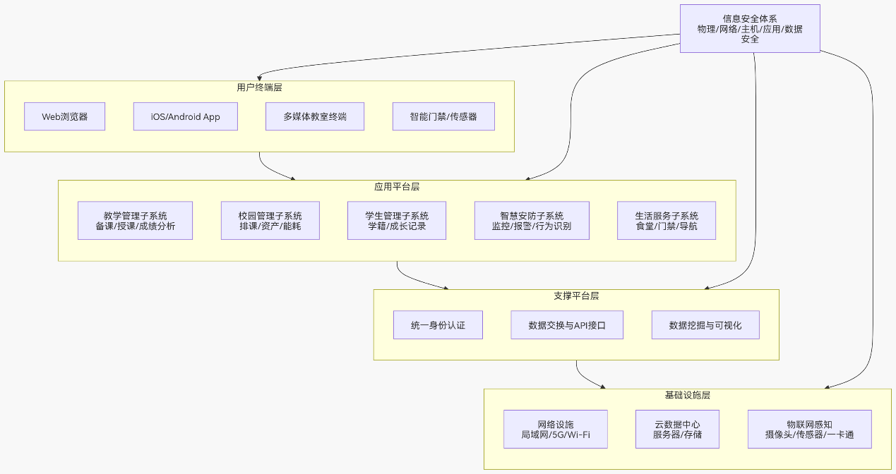 - 数据互通:打破各部门信息孤岛,统一数据中台,为校园决策提供数据支撑;